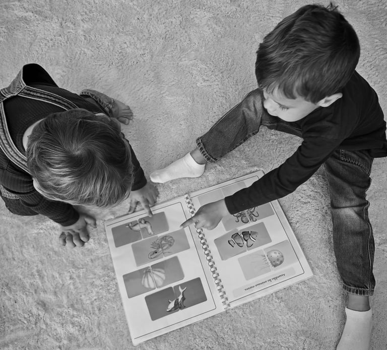 Nous avons crée ce concept pour répondre aux besoins de nos enfants et aux notres. Nous avons deux enfants qui ont 2 et 4 ans. Nous cherchions avant tout à leur créer des petits livrets d'activités ludiques à amener partout (et surtout réutilisables). Mais également des supports qui pourrait améliorer notre quotidien et favoriser leurs apprentissages et autonomie.